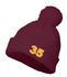 > MAROON POM POM BEANIE WITH EMBROIDERED LOGO