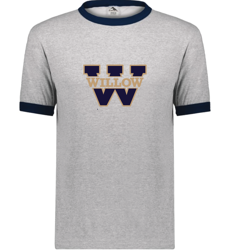 > MENS GREY/NAVY RINGER TSHIRT WITH SCREENED (WILLOW W) LOGO