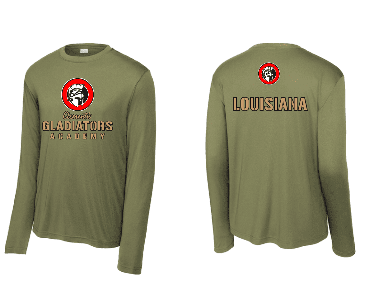 UNISEX MILITARY GREEN LONG SLEEVE DRIFIT SHIRT WITH SCREENED LOGOS
