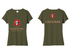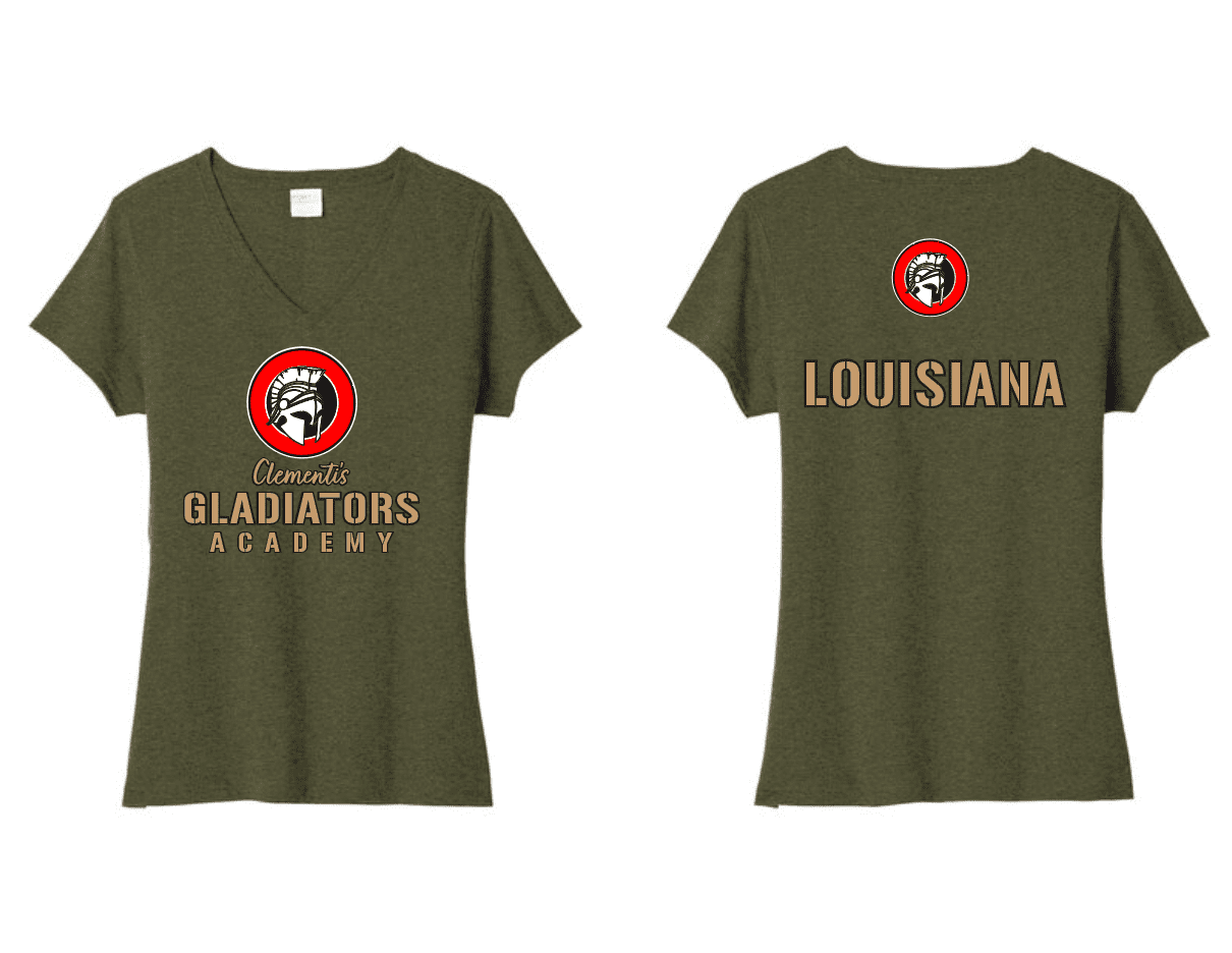 > WOMENS MILITARY GREEN TRIBLEND VNECK SHIRT WITH SCREENED LOGOS
