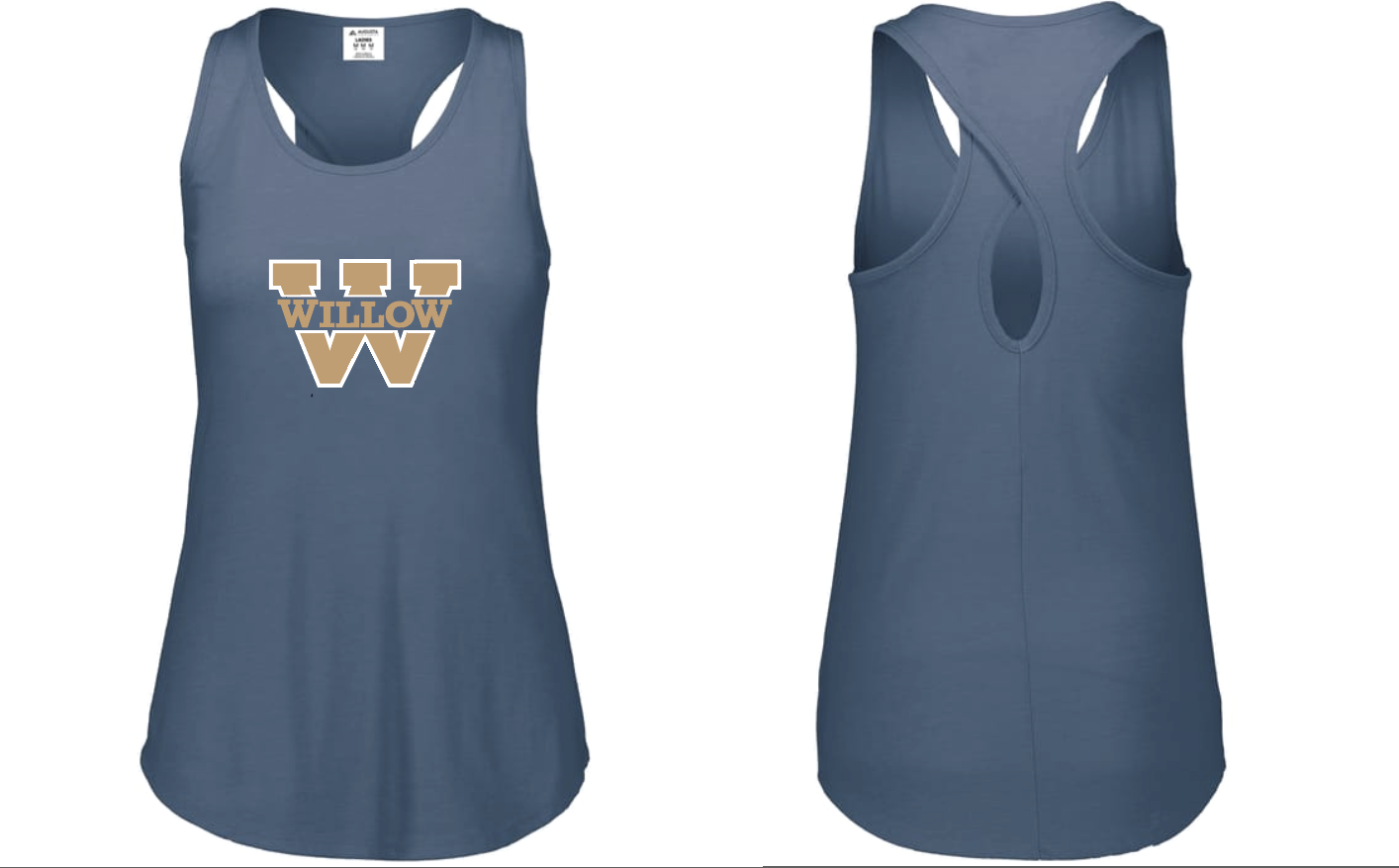 > WOMENS NAVY HEATHER TRIBLEND SPECIAL BACK TANK WITH SCREENED (WILLOW W) LOGO