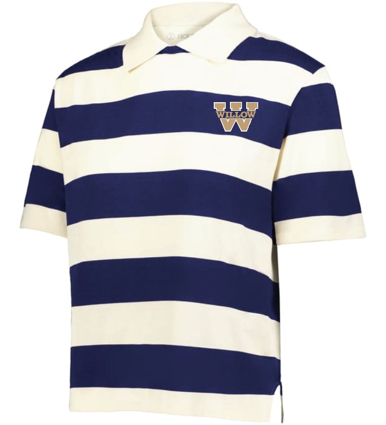 > WOMENS STREET POLO NAVY/WHITE STRIPED WITH (WILLOW W) LOGO EMBROIDERED